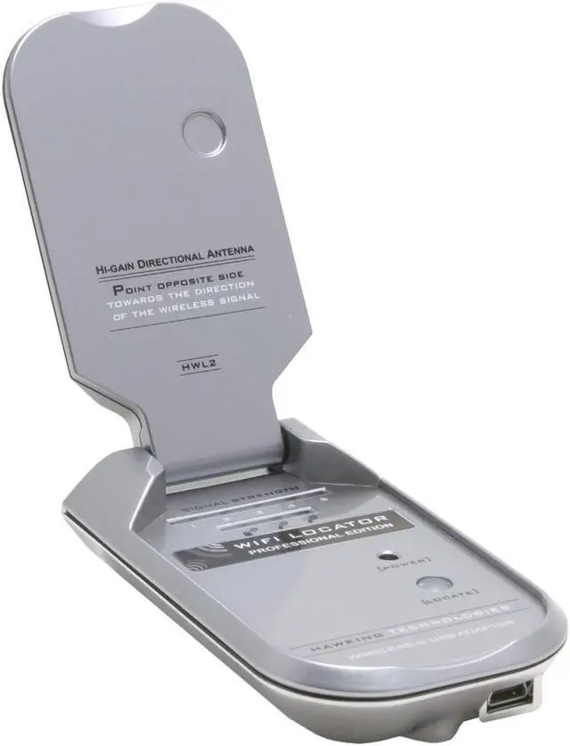| Features | Detect and Connect to Any Wireless b/g Network 2 Products in One: WiFi Locator + Wireless-G USB Adapter Finds Wireless Networks (Hot-Spots) w/o Taking Out Your Laptop Connects to your Laptop with USB 2.0 to access WiFi networks Detects and Indicates Wireless Networks with Security Enabled Advanced Hi-Gain Directional Flip-Open Antenna provides Optimal Wireless Range and Performance (Up To 300% over that of standard wireless adapters) |