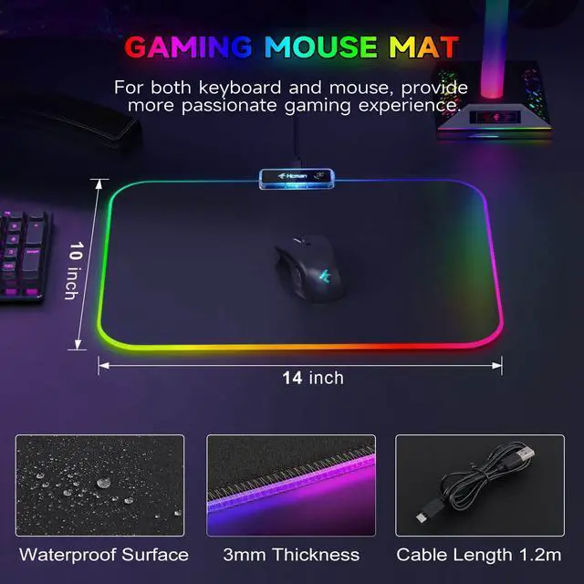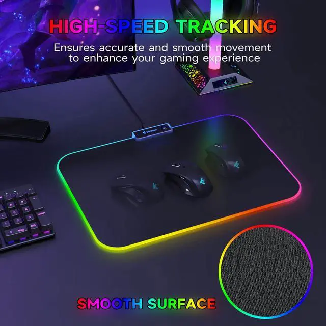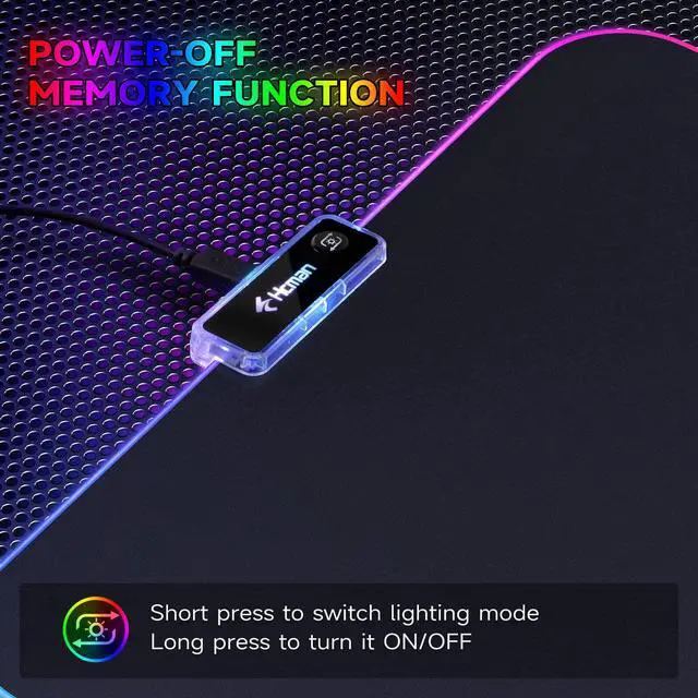 The RGB Led illuminated gaming mouse pad has one control button to easily switch between LED modes. One of the buttons can switch the light color on and off. Also, it has a memory function. It remembers the last lighting setting even after the power is turned off.