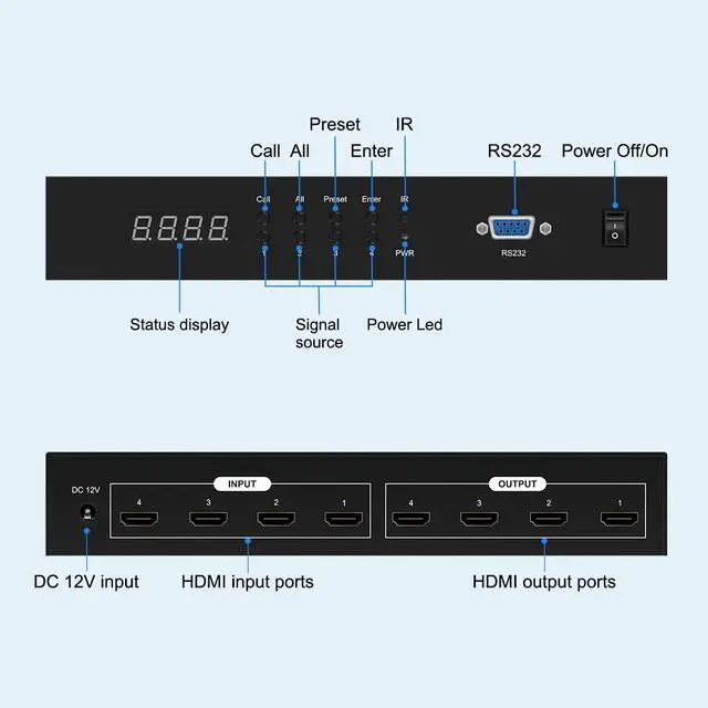 This HDMI 4x4 Matrix Switcher with 4 HDMI INPUT and output
