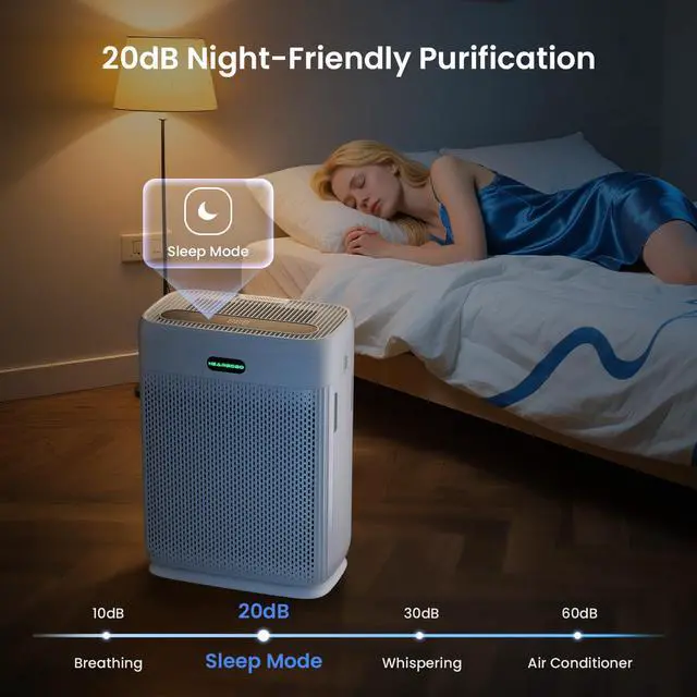 QUIET OPERATION & AROMATHERAPY: Enjoy ultra-silent 20dB operation. The customizable dimmable night light and unique breathing light function, allowing you to adjust brightness to your perfect comfort level. Our home air purifiers with built-in aroma diffuser lets you choose your preferred essential oils(not included), customizable aromatherapy to transform your space. Child lock make maintenance and family safety effortless.