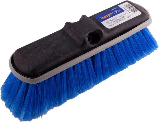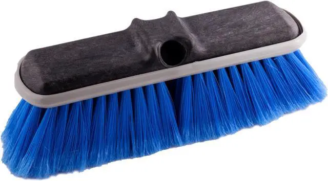 This 10 inch car wash brush head can be used with a hose or bucket and will not scratch vehicle surfaces. A large size scrub brush with soft bristles ready to make cleaning your semi-truck or pickup and car a much easier chore. Get rid of touch grime and road dirt without scratching the vehicle surface. When paired with a hose and mild detergent you can even clean off annoying lovebugs after a long haul. Covers a nice surface area in one clean sweep and makes a great truck cleaning accessory for professional drivers and car care enthusiasts.