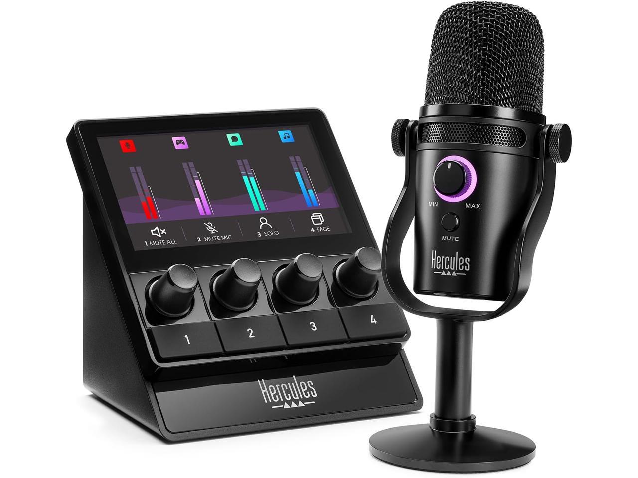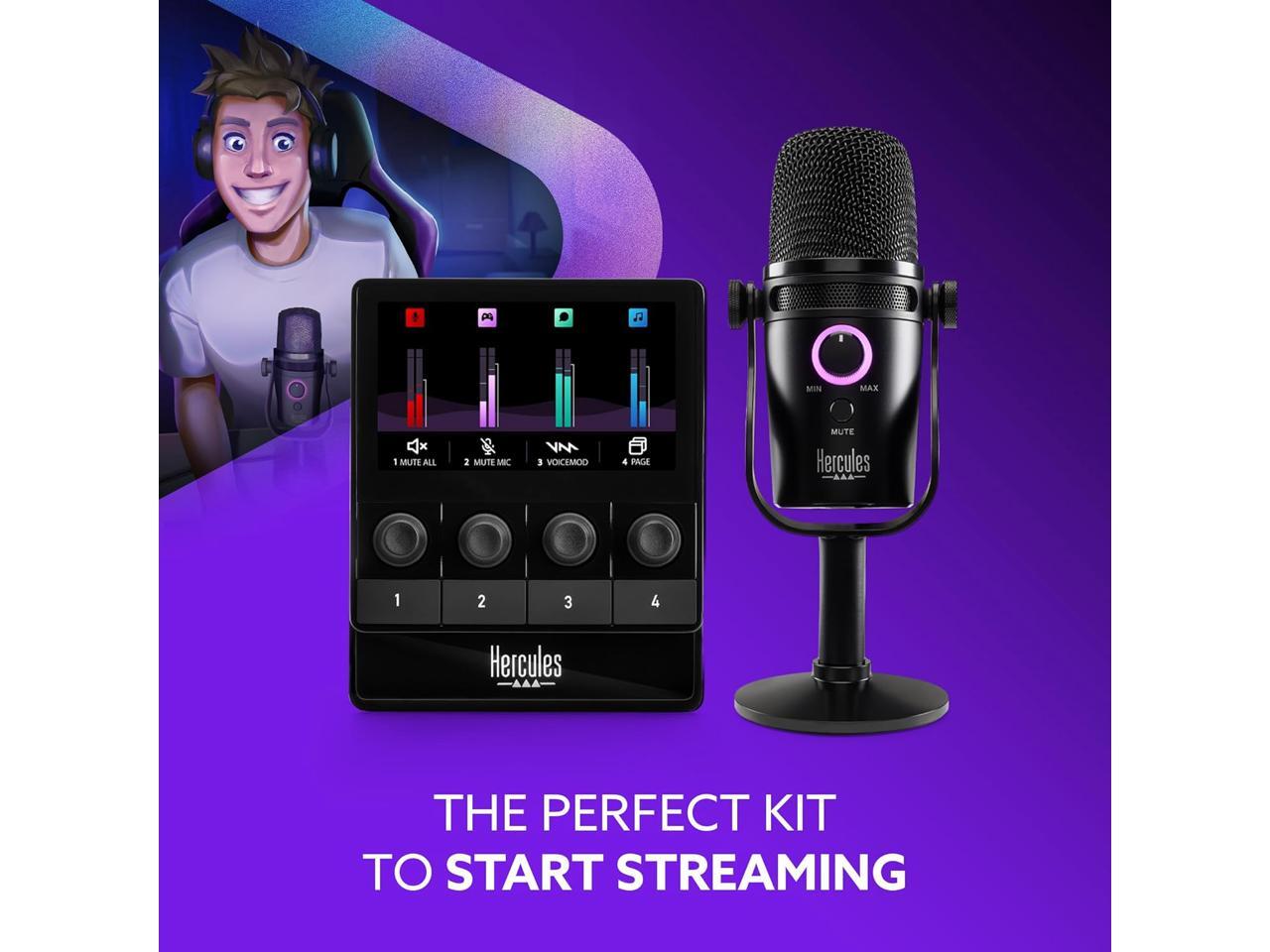 Hercules 4781068 Stream Starter Kit - Includes Stream 100 and HUD-600 USB Microphone + 3 Months Voicemod Pro - Core Streaming apps pre-Integrated (OBS, Streamlabs)