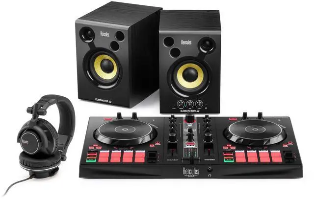 The perfect all-in-one kit to learn how to DJ. Includes all the essentials: the DJControl Inpulse 300 MK2, DJMonitor 42 monitoring speakers and HDP DJ60 headphones. No need to add any cables or buy any software; simply plug and play!