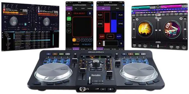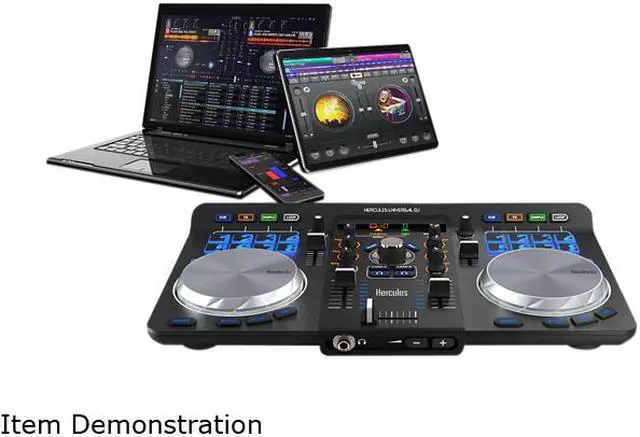 | Package Contains | Hercules Universal DJ Installation CD Printed Quick Start Guide + poster USB cable RCA mini-jack audio cable |