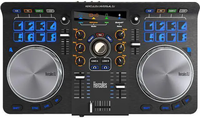 | Specification | 1 DJ Controller. 3 modes: PC/Mac LAPTOP MODE (via a USB connection) - Included DJUCEDTM 40°DJ software Compatible with MIDI DJing software MULTISCREEN MODE: Mac or PC (via a USB connection) + your smartphone or tablet (Bluetooth connection) - Free download of DJUCEDTM Master app from the iOS and Android stores TABLET MODE (Bluetooth connection) - DJUCEDTM App available from the iOS and Android stores DJ controller with dual mixing decks and Bluetooth wireless technology Built-in audio interface (Mix + Preview outputs / External input) Capacitive jog wheels (11 cm diameter) 16 performance pads * please * please check your Android device compatibility here Comprehensive software suite: DJUCEDTM 40°for Mac/PC DJUCEDTM Master for iOS / Android DJUCEDTM App for iOS / Android Minimum configuration: DJUCEDTM 40° PC / MAC 2 GHz or faster CPU 2 GB RAM ore more Windows Vista, 7, 8 (32 and 64 bits) MAC OSX 10.7 and higher (32 and 64 bits) DJUCEDTM Master (iOS and Android) iOS 7 and higher / Bluetooth 4.0 iPhone 4S, iPod Touch 5, iPad mini, iPad 3 and later devices Android 4.0 and higher / Bluetooth 3.0 DJUCED App (iOS and Android) iOS 7 and higher / Bluetooth 4.0 iPad mini, iPad 3 and later devices |