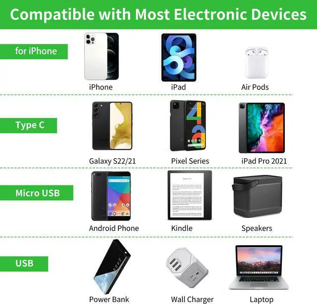Compatible with iPhone 14/14 Plus/14 Pro Max/13/13Pro/13Pro Max/12/12 Pro/12Pro Max/11/Pro/XS/Xs Max/XR/X/8 Plus/8/7 Plus/7/6s Plus/6s/6 Plus/6/5s/iPad Air/Air 2/mini/mini 2/mini 4/iPad4th gen/iPod Touch/Airpods/Homepod and more.