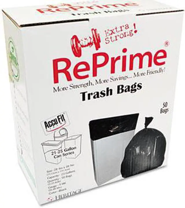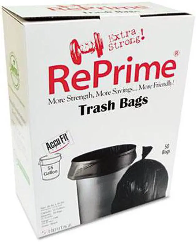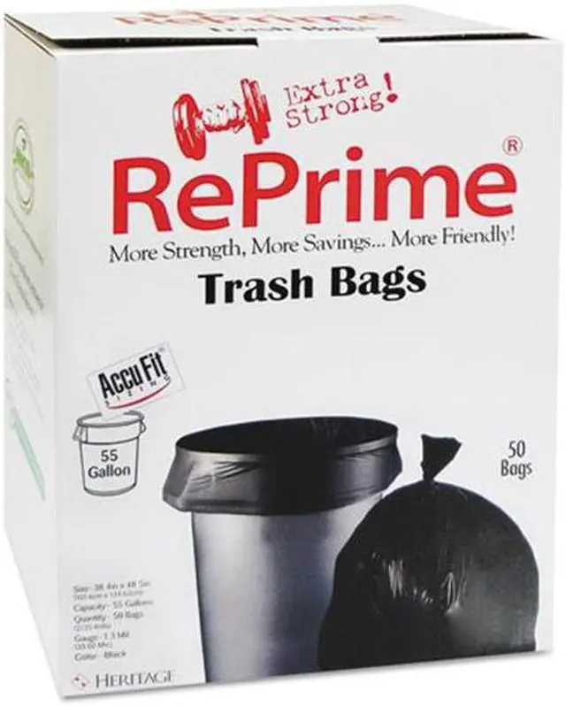Reprime Can Liners 55gal 1.3mil Black 40" x 53" 50/Box H8053PKRC1