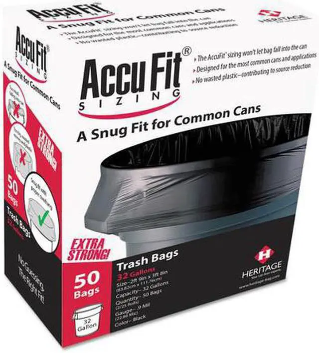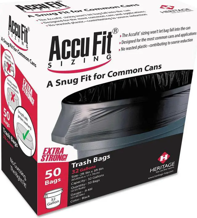 • Bags use high quality prime resin for tear-resistant construction. Designed with Accufit® sizing to perfectly fit most common cans.