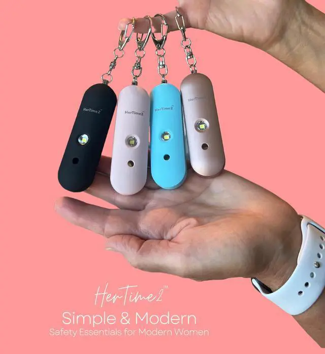 HerTime2 personal safety is your running and outdoor companion. The Hertime2 personal alarm keychain, is specifically designed as a personal alarm for women, this device is an innovation in the realm of alarms for safety and female safety devices. You can use personal safety alarm as a smart complement to traditional self defense and self protection devices for women like pepper spray and taser or stun. While pepper spray and taser, often included in a pepper spray keychain set or self defense kit for women, are effective, they have limitations, especially for college students living in dorms. Pepper spray can sometimes be difficult to aim accurately. It's a compact, yet powerful tool that can go everywhere with you. A great addition to your self defense collection as personal security devices for women or can be simply used for keychains for women.