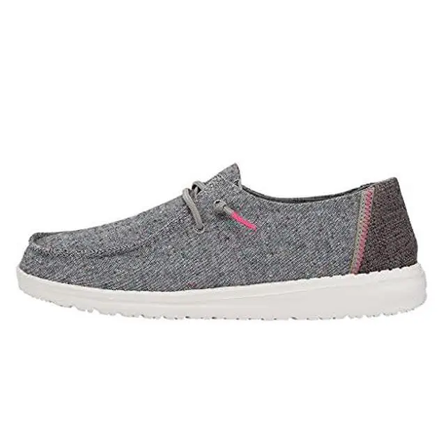 Our iconic low-top moc. Soft breathable cotton canvas in breezy summer colors. Easy-On elastic lacing system and our patented UltraLIGHT EVA outsole for extra comfort. Lined in bright prints for extra style points when you kick them off. 8-ounce cotton canvas with contrasting patent. PU heel detail and colorful lining prints. Easy-On System with elastic laces. Wide Fit. UltraLIGHT outsole. Ergonomic leather-lined removable memory-foam insole. Machine washable (cold) Air dry.