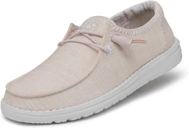 Add a pop of pastel to your spring-here-I-come style with Wendy Star. The woven chambray textile brings relaxed-denim vibes but breathable-as-air feels. The easy slip-on style lets you strut in signature comfort while floating on ultralight EVA outsole-ish air. Like walking on sunshine with extra foam. Textile upper. Woven laces. Lightweight outsole. Flexible outsole. Easy-on system. Travel ready. Removable foam insole.