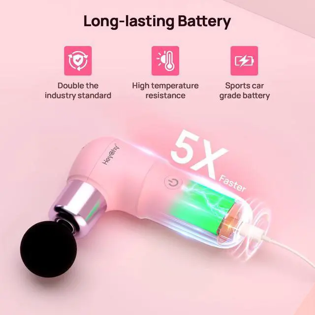 [Super Powerful 3C Battery] This percussion muscle massage gun is equipped with a 3C battery. Compared to other products, it boasts a 3x higher power discharge rate and 5x longer battery life. Its 800mAh battery capacity also allows for up to 7 hours of continuous use.
