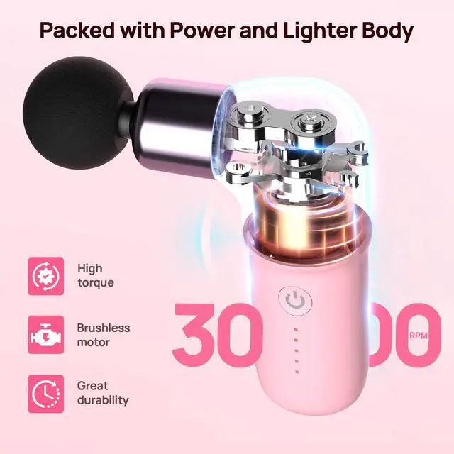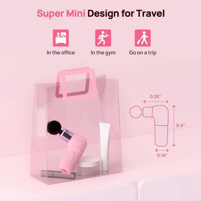 [Mini Pocket Design] Our mini massage gun features an ergonomic L-shaped design and a skin-friendly feel that's sure to please. Weighing only 0.6 pounds, it's easy to carry around, whether at the gym, at the office, or while traveling. It slips easily into bags and pockets for a relaxing massage.