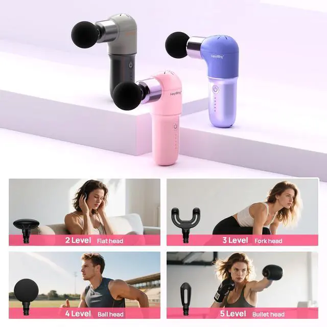 [Customizable Wellness] Our handheld percussion massage gun offers 5 different speed levels and 4 different attachments. You can press the power button and freely choose the appropriate speed and accessories according to the degree of muscle soreness.