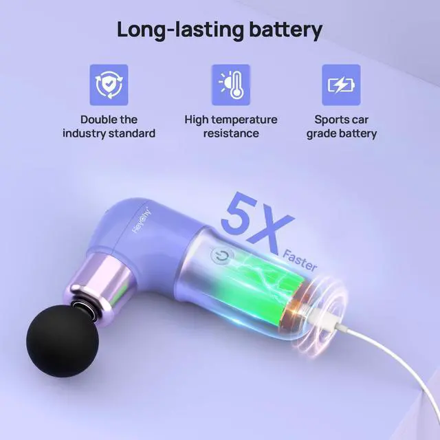 [Super Powerful 3C Battery] This percussion muscle massage gun is equipped with a 3C battery. Compared to other products, it boasts a 3x higher power discharge rate and 5x longer battery life. Its 800mAh battery capacity also allows for up to 7 hours of continuous use.