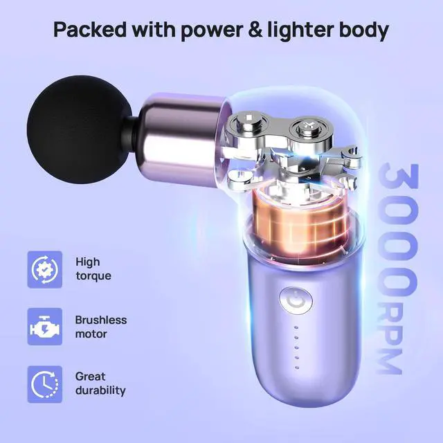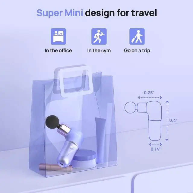 [Mini Pocket Design] Our mini massage gun features an ergonomic L-shaped design and a skin-friendly feel that's sure to please. Weighing only 0.6 pounds, it's easy to carry around, whether at the gym, at the office, or while traveling. It slips easily into bags and pockets for a relaxing massage.