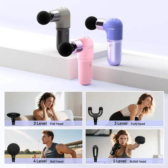 [Customizable Wellness] Our handheld percussion massage gun offers 5 different speed levels and 4 different attachments. You can press the power button and freely choose the appropriate speed and accessories according to the degree of muscle soreness.
