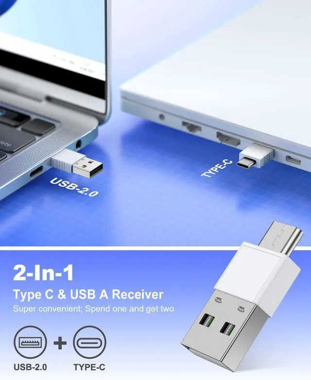 UBS wireless receiver, 2.4G wireless RF technology, plug and play wireless receiver, no software installation required, no hassle in setting up