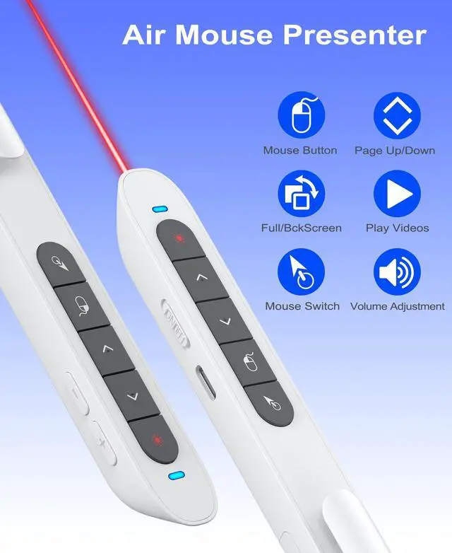2 IN 1 Wireless Presenter Clicker with Air Mouse, Long Range Remote Clicker for Presentations