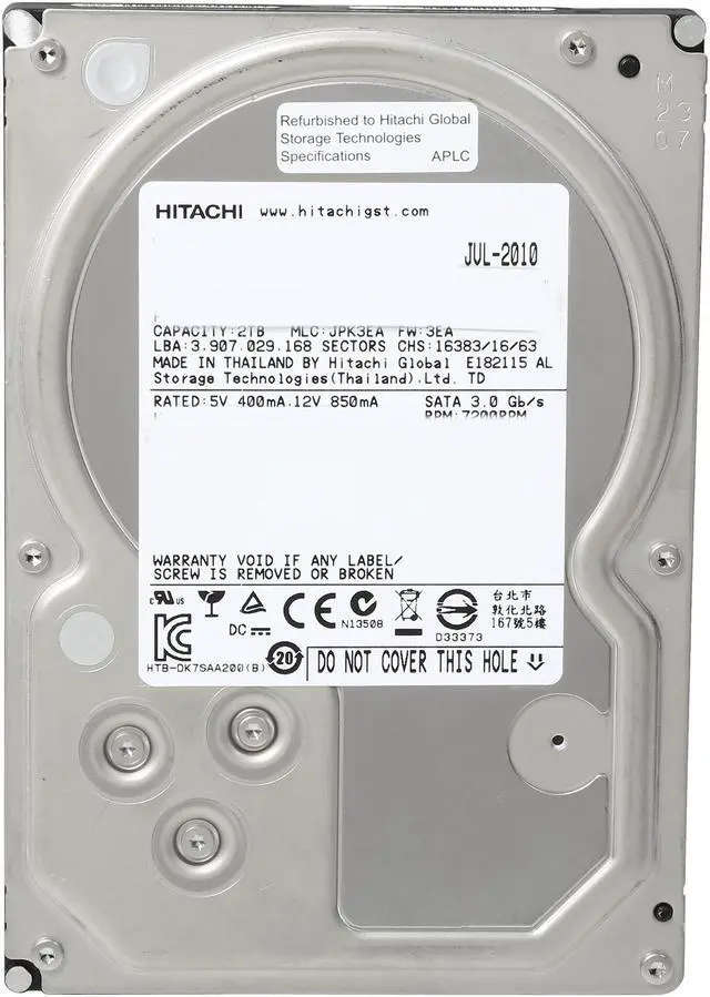 HGST 0F10453 2TB 7200 RPM 32MB Cache SATA 3.0Gb/s 3.5" Internal Hard Drive
