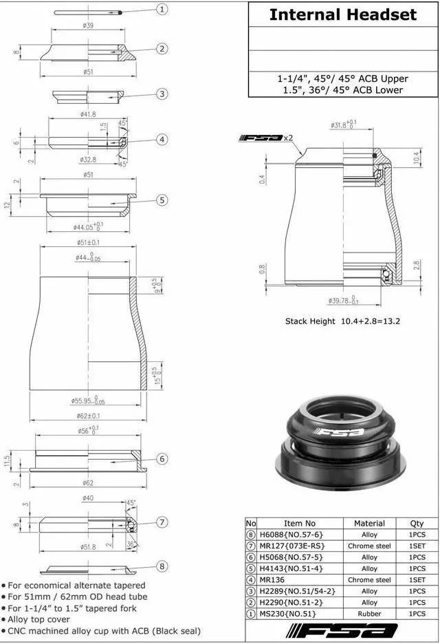 - 1-1/4", 45 ?/ 45? ACB Upper