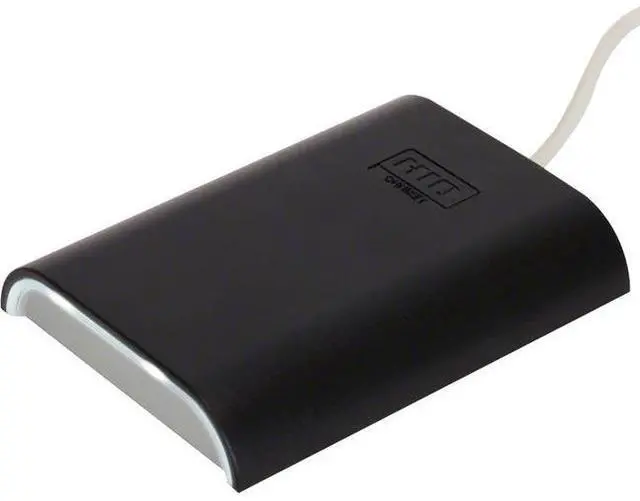 A contactless smart card reader commonly used for access control systems and PC login using existing employees' credentials. Independent of the operating system and use scenerio, the reader functions in virtually any environments, and its CCID or Keyboard Wedge interface provides the ideal solution with no need to install or maintain drivers.