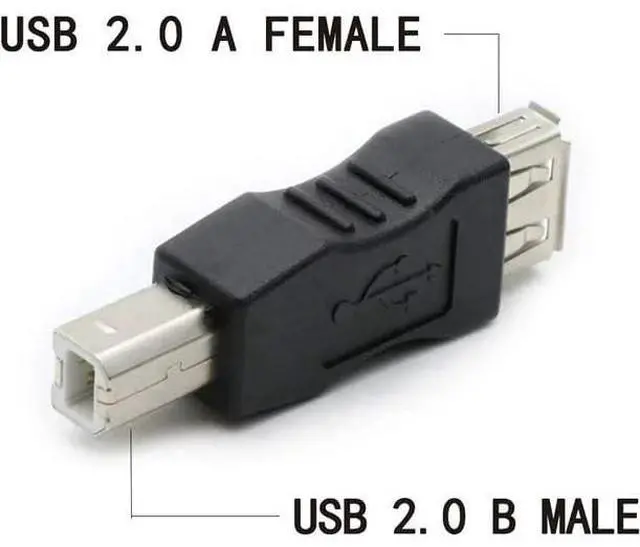 - USB 2.0 A female to USB B printing Male Adapter Converter,Compatible with USB specification 1.1/2.0. Enables printers, scanners, digital cameras, and other peripherals with USB type B ports to connect to the computer. Portable, it can also be used to connect cables to become an extension 2. Color: black.