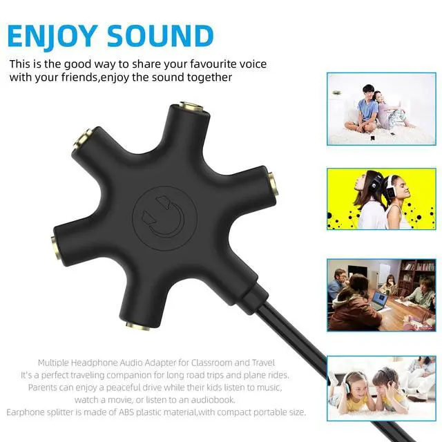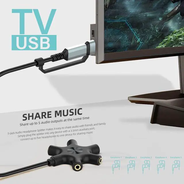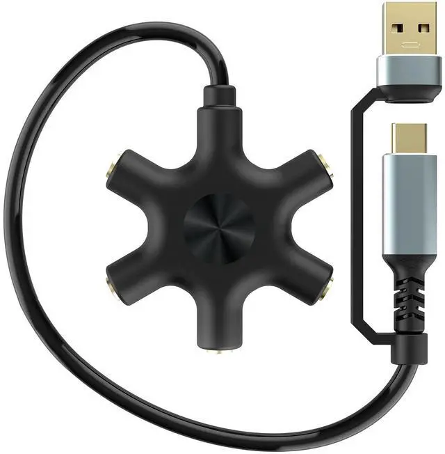 The product is suitable for electronic equipment with USB interface and C interface. It adopts digital chip to automatically identify, and the sound quality restores the real sound quality. usb and type c Headphone adapter splits line into 5 auxiliary (3.5mm) ports for easily sharing sound with up to 5 people