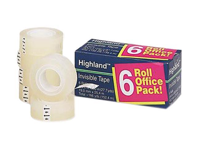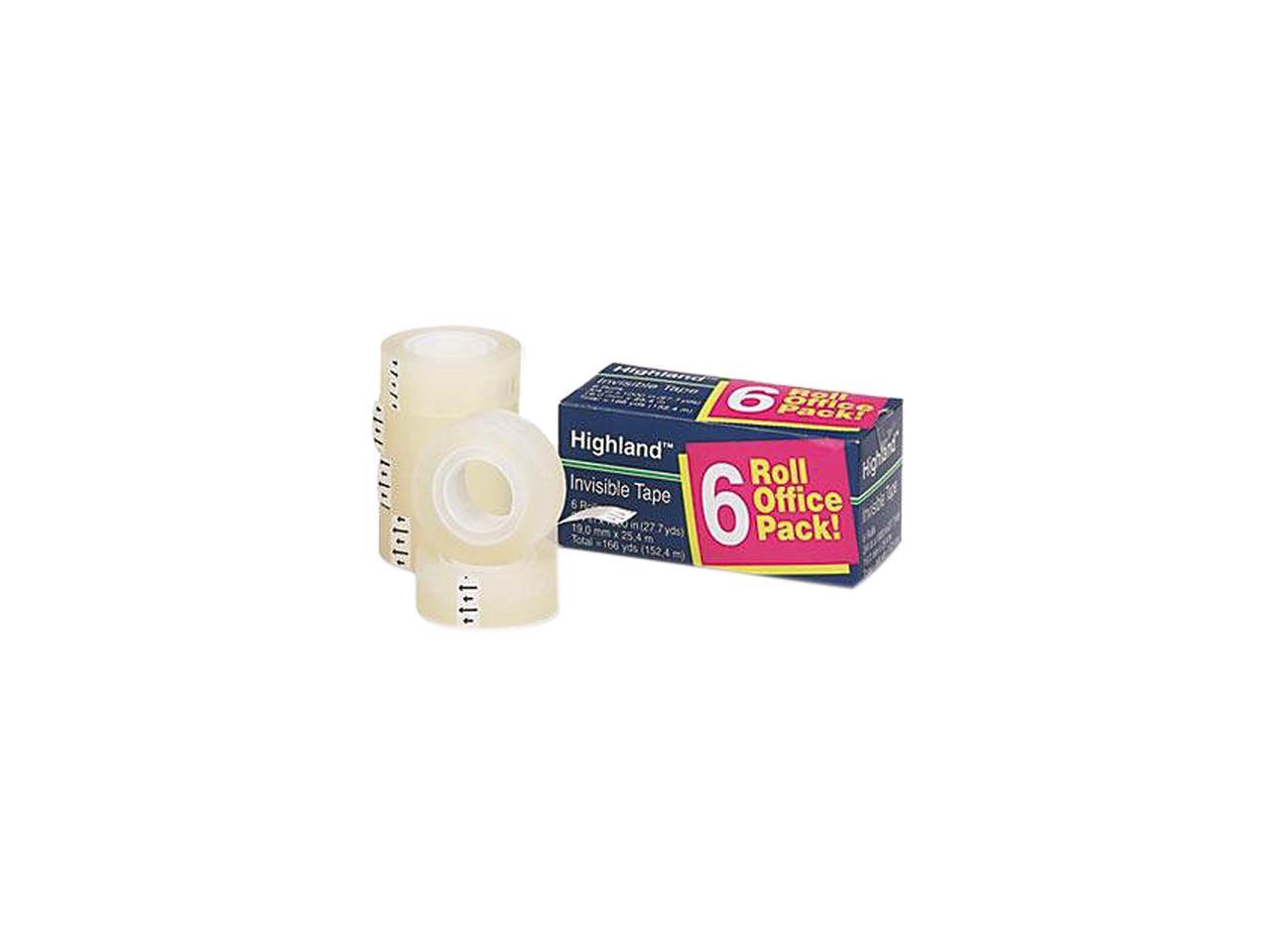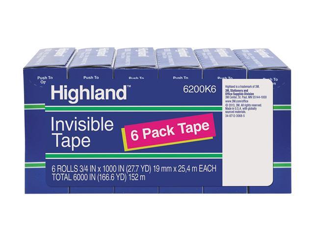 Highland 6200-34-1000 Invisible Permanent Mending Tape, 3/4" x 1000", 1" Core, Clear, 6/Pack