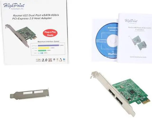 SATA 6 Gb/s CompliantThe HighPoint Rocket 622 features next-generation SATA Revision 3.0 compliant eSATA ports to provide 6 Gb/s data transfer rates for optimal performance, efficiency, convenience and flexibility.