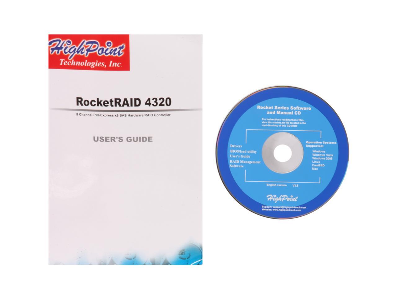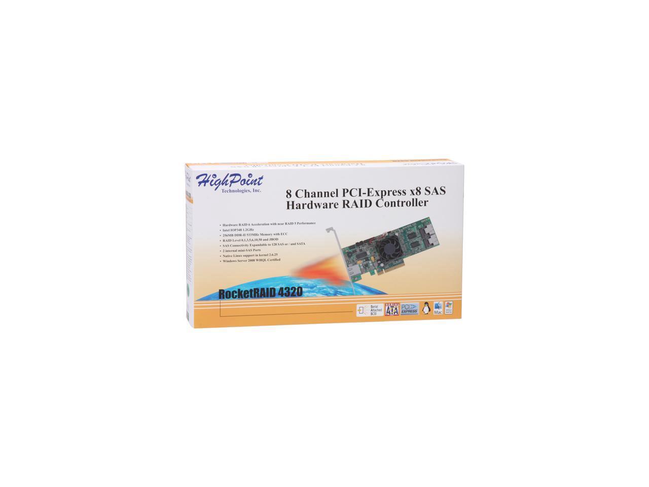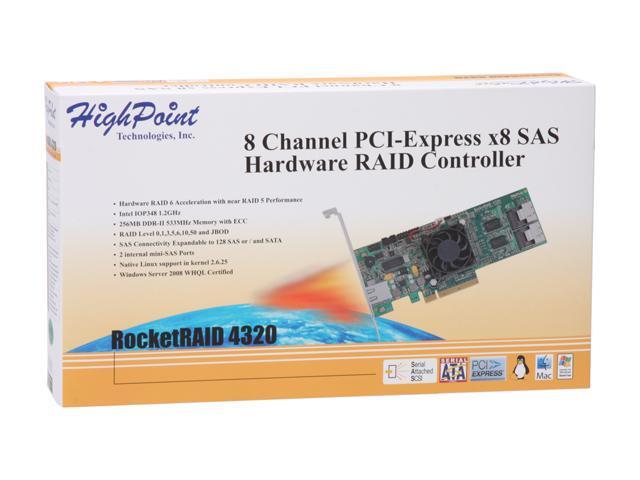 HighPoint RocketRAID 4320 PCI-Express x8 Eight-Port SATA and SAS Hardware RAID Controller Card