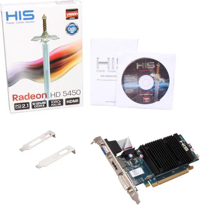 SilenceThe HIS 5450 Silence uses only a heatsink to effectively take away the heat from the card, and will not produce any noise. Enjoy your 0db HD multi-media and gaming experience!