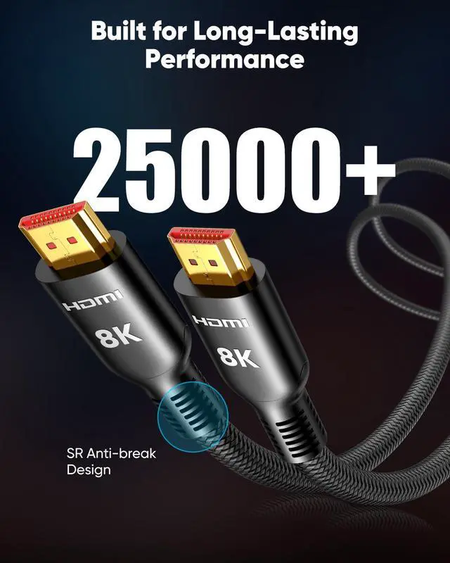 | Special Feature | Braided, Ultra-High Speed,10K 8K@60HZ/ 5K 4K@120HZ 144HZ, Exclusive 'SR Design' Technology, 48Gbps, eARC, ARC, HDR 10+, HDCP2.2&2.3, Dolby Atmos, VRR, ALLM, QMS, QFT |