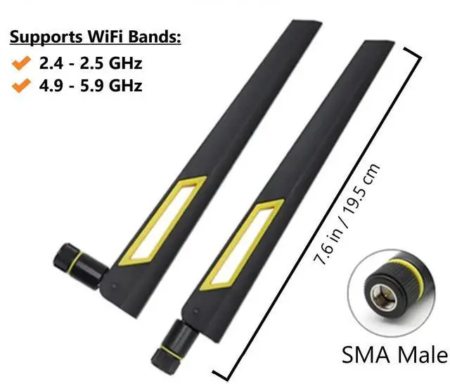 Boost your Wi-Fi! Upgrade your router and/or wireless adapter with high-gain antennas! Specifications: