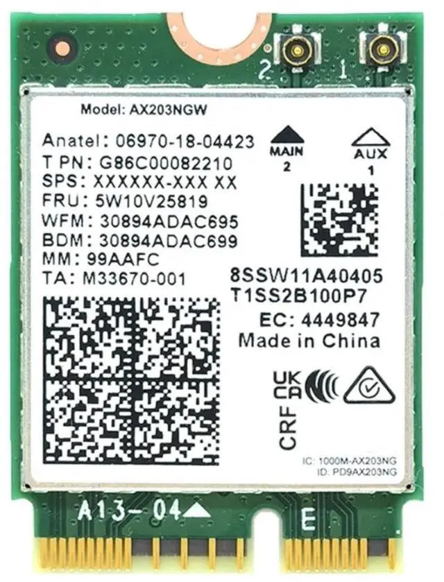 M.2 CNVio2 Compatibility: This card is specifically designed for laptops with an M.2 CNVio2 slot. It's compatible with most 64-bit Windows and Linux systems, making it a versatile choice for various devices. (Note: Antennas and screws are not included.)