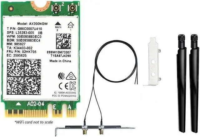 For fastest and most responsive connections, PCs should connect to a Wi-Fi 6 (Gig+) router. Compatible with Bluetooth 5.0 and backwards compatible with earlier edition devices. Compatibility: Only compatible with Intel-based, Linux or Windows 10/11 64-bit machines, which do not current utilize a 9560 CNVI part. PC must have available PCIe x1 slot. Kit includes Wi-Fi 6 AX200 (Gig+) module, 2x antenna cables and brackets (low-profile and standard profile) for install in most desktop PCs. Don't forget to download your drivers before installing your new card! (Some systems will do this automatically). Drivers are available on the public domain under "AX200 Drivers" Wi-Fi 6 is nearly 3X faster than standard AC 2x2 with 80 MHz channels, delivering 75% lower latency for more responsive gaming and seamless video conferencing Improved security with WPA3 and simplified passwords3 for improved protection against wireless hacking For fastest and most responsive connections, PCs should connect to a Wi-Fi 6 (Gig+) router. Compatible with Bluetooth 5.0 and backwards compatible with earlier edition devices.