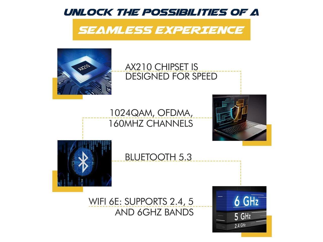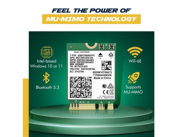 - ["Update your WiFi to Tri-Band: Max Speeds up to 2.4Gbps across the 2.4GHz, 5GHz, and 6GHz bands. The 2.4GHz for long range, 5GHz for high speeds & 6GHz for high speed, interference free and Ultra-low Latency WiFi","Compatible with Bluetooth 5.2: Compared with BT5.1, it has larger capacity, higher speed and extremely low latency","Next-Gen: Even better than the AX200-the AX210 has all the features you love, such as MU-MIMO, 1024QAM, OFDMA, 160MHz channels and WPA3 available in the less congested 6GHz band","Compatibility: Only compatible with Intel-based, Windows 10\/11 64-bit systems, which do not current utilize a 9560 CNVI part. PC must have available M2 Slot with Key A or Key E"]