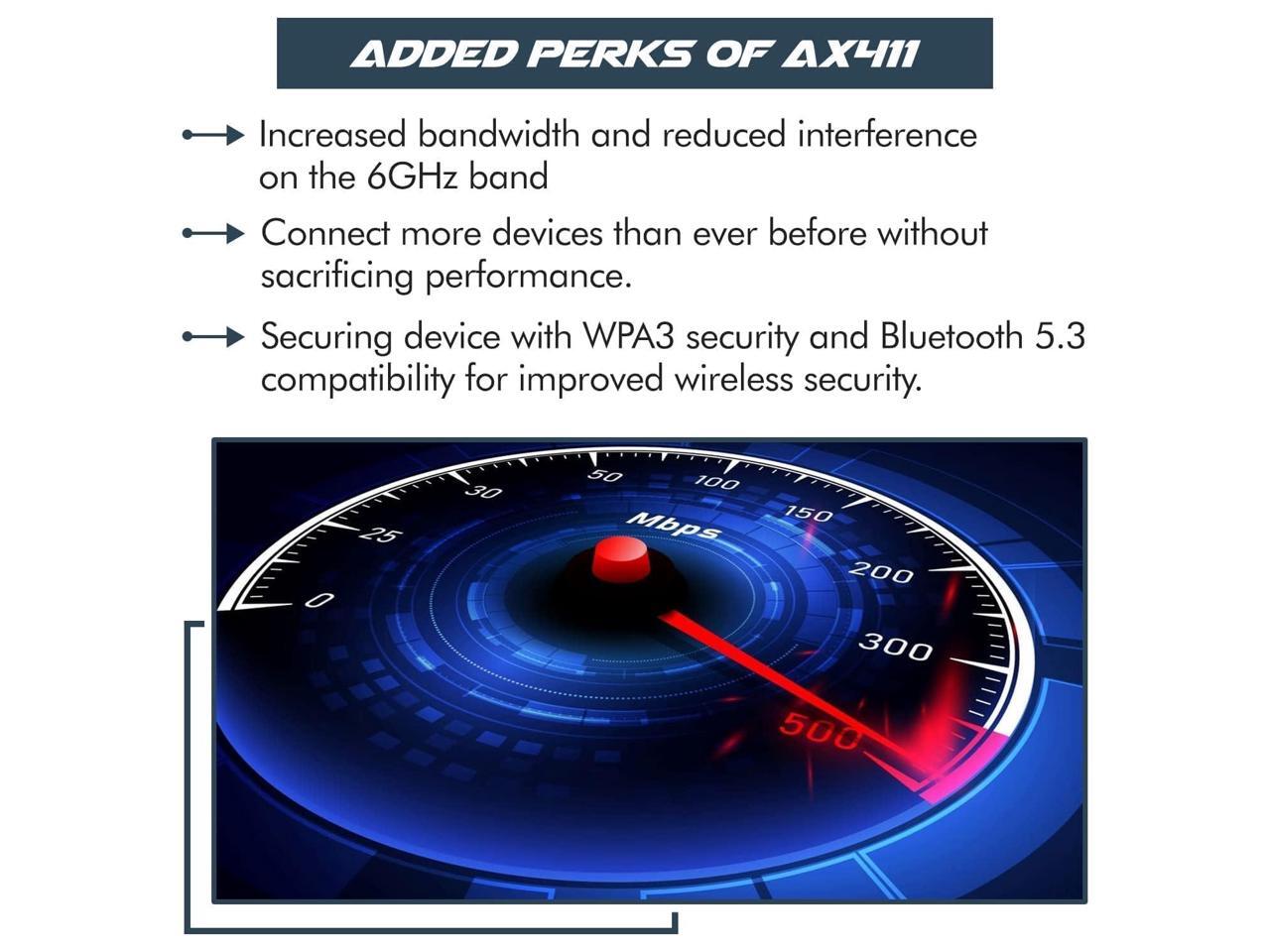 - Next Gen CRF1 (Companion RF): Even better than the AX201 and AX211! The AX411 has all the features you love, such as MU-MIMO, 1024QAM, OFDMA, 160MHz channels and WPA3 available in the less congested 6GHz band