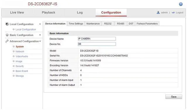 Please note that: 1 The Week in the camera is in Chinese. 2 It support free update in HIkvision Chinese official website. 3. Virtual PTZ (can't use PTZ function in NVR) HIK 6MP PTZ IP Camera DS-2CD6362F-IVS Fisheye Camera with I/O Interface Microphone and Speaker Vandal-proof PTZ Security Camera Features * 1/ 1.8" progressive scan CMOS * 6 mega-pixel image sensor * Up to 3072 x 2048 resolution, 30fps * 360° panoramic view * Multiple viewing modes * Virtual PTZ * Up to 15m IR range * Bulit-in microphone and speaker * Audio/Alarm I/O / RS485 * IP66 * IK10 vandal proof Update Freely!
