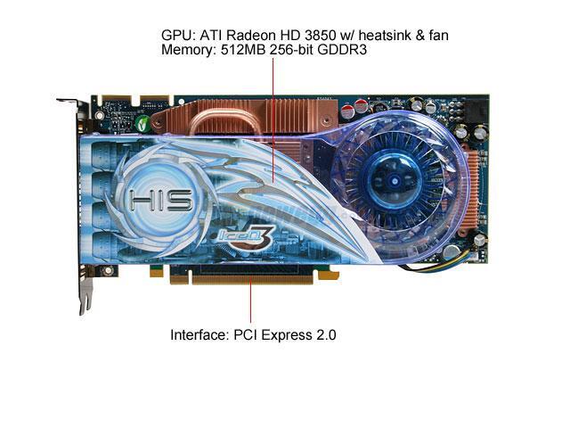 HIS Radeon HD 3850 DirectX 10.1 H385QX512NP 512MB 256-Bit GDDR3 PCI Express 2.0 x16 HDCP Ready CrossFireX Support IceQ3 TurboX Video Card