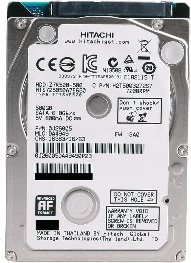 HITACHI Hts725050A7E630 Travelstar Z7K500 500Gb 7200Rpm Sata 6Gbps 32Mb Buffer 7Mm 2.5Inch Hard Drive