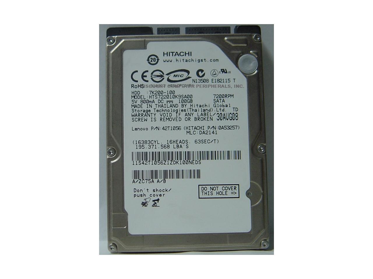 Hitachi GST Travelstar 7K200 HTS722010K9SA00 (0A50937) 100GB 7200 RPM 16MB Cache SATA 1.5Gb/s 2.5" Internal Notebook Hard Drive Bare Drive