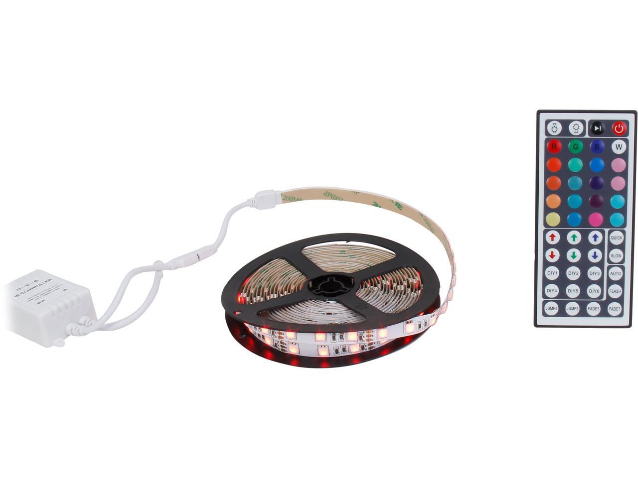 HitLights RGB Multicolor Changing SMD5050 High Density LED Light Strip Kit - 300 LEDs, 16.4 Ft Roll, Cut to Length, Includes 60W Adapter and 44 Key Controller - Color Changing, 314 Lumens per foot