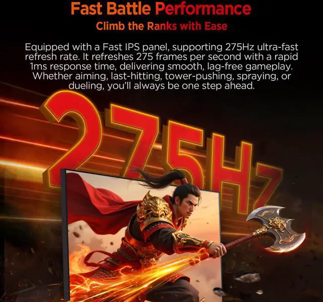 Ultra-Fast 275Hz Refresh Rate – Dominate every frame with QHD 2560×1440 resolution and 275Hz refresh rate, paired with 1ms DIC response time for ultra-smooth gaming and minimal motion blur.