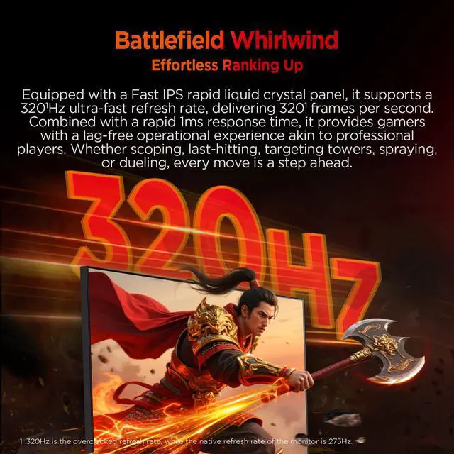 Ultra-Fast 320Hz Refresh Rate – Experience lightning-fast 320Hz refresh rate and 1ms DIC response time for ultra-smooth gameplay and minimal motion blur