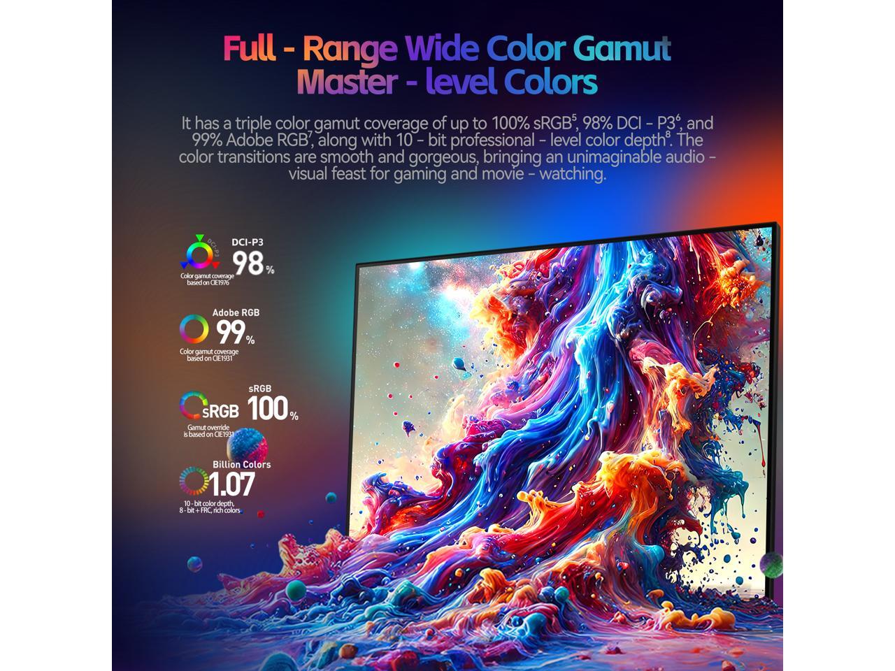 - Mini LED IPS Panel – 27" display with 550cd/m² brightness, 1.07B color depth, and 98% DCI-P3 coverage delivers stunningly vivid and accurate colors