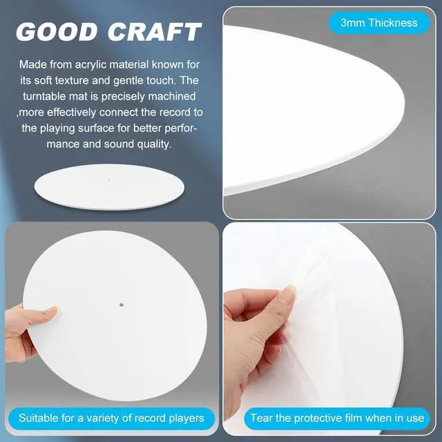 1. Upgrade your vinyl listening experience with the 12-inch Acrylic Turntable Mat. Designed for both casual listeners and serious audiophiles, this mat offers superior sound quality, dust-free protection, and seamless compatibility with your turntable.