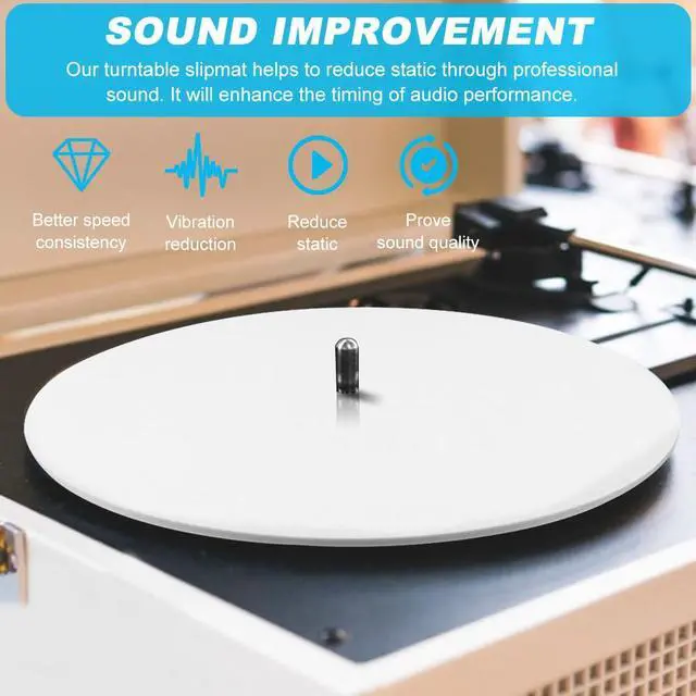 4. The flat, rigid surface of our turntable mat not only enhances sound quality but also prolongs the life of your vinyl records by reducing wear and tear. Designed for optimal record-to-platter coupling, it provides precise tracking and minimizes wow and flutter for unparalleled playback stability.