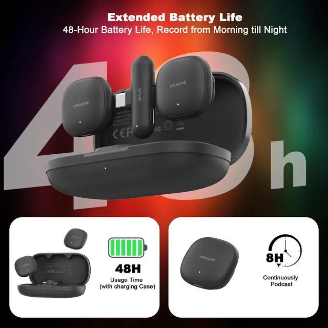 The long-lasting battery is another game changer: each transmitter works for up to 8 hours on a single charge, while the charging case offers two additional full recharges. That means you can enjoy up to 48 hours of continuous runtimeideal for traveling vloggers, podcasters, or anyone shooting multiple sessions in a day. The stable 164FT transmission range ensures your wireless mics won't cut out, even when filming at a distance.