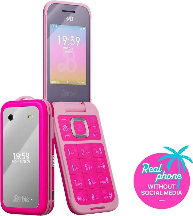 Nothing beats spending real time together. Thats what the HMD Barbie Phone is all about! No distracting apps here. Its time to disconnect to reconnect. This flip phone is chic, sleek and pink and thats just on the outside. Open it up and everything on the screen feels like its straight out of The Barbie DreamHouse with a few hidden surprises for you to find. This may be the HMD Barbie Phone, but this is about your style, too! It comes with Barbie covers, each with a different design.